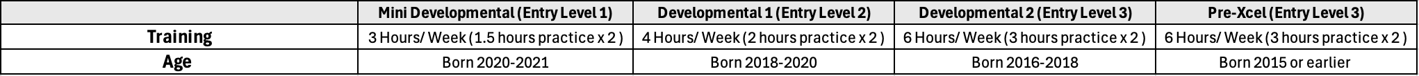 - Designed for gymnasts who demonstrate the desire and capability to train at a more intensive level.