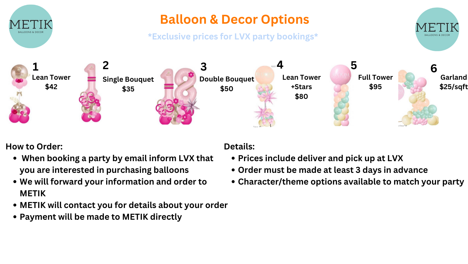 - Parties are only available on weekends, in the afternoon, please email for availability.