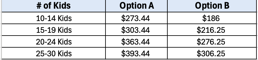 Option B- 1 hour of play in the gym only